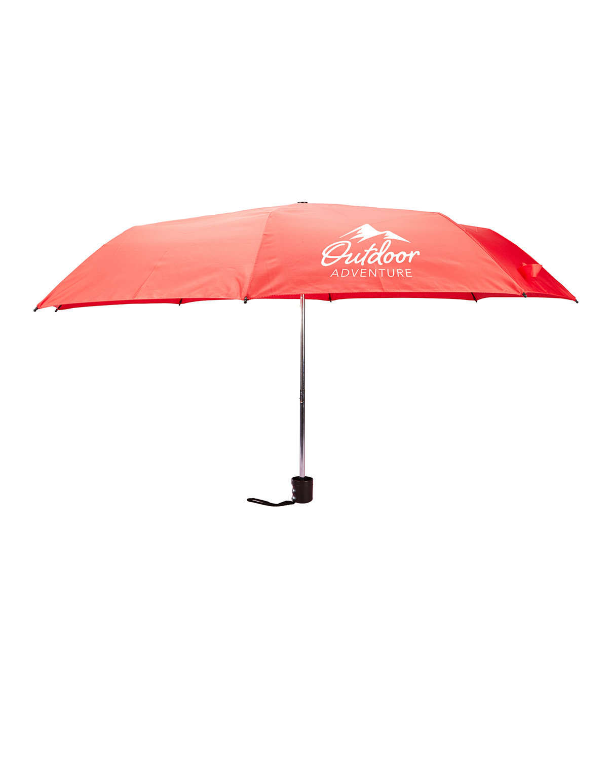Promotional folding umbrella with 42″ arc. Manual open/close. Canopy features 8 panels made of Pongee. Durable 3-section Steel shaft. Pongee hook and loop fastener. Includes matching Pongee sleeve. Easy-grip PS plastic handle with Polyester wrist strap (4.5″l). *24-hour rush service only applies to catalog quantities up to 288 units. 9.5000″ L x 1.7500″ Diameter